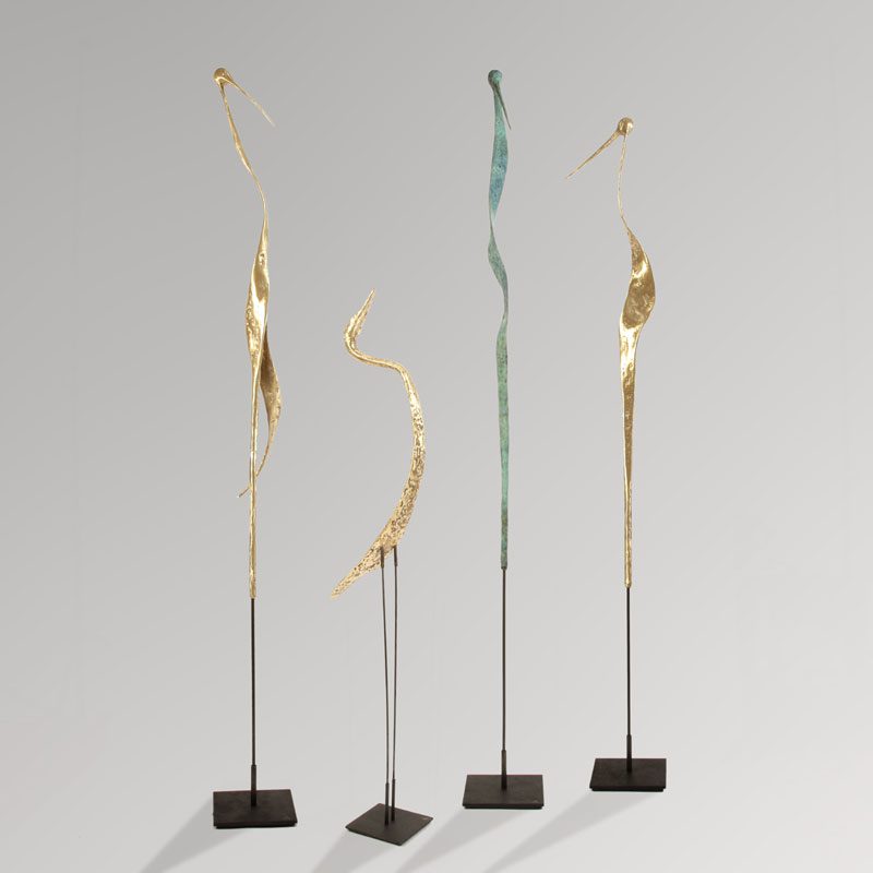 Ensemble de plusieurs oiseaux. Bronze brut et/ou patinés et/ou semi-patinés. Socles métal.